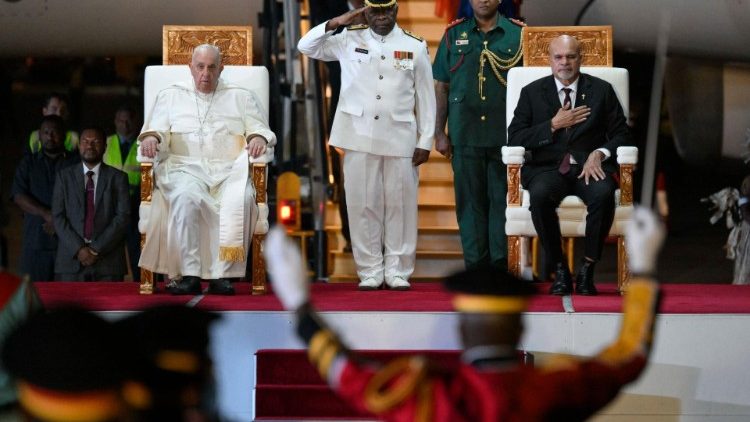 Vào lúc 7 giờ 6 phút chiều tối cùng ngày 6/9/2024 giờ Papua New Guinea, chiếc máy bay A330 của hãng hàng không Garuda của Indonesia chở Đức Thánh Cha và đoàn tùy tùng đã hạ cánh xuống sân bay quốc tế Jacksons ở thủ đô Port Moresby của Papua New Guinea, đánh dấu khởi đầu chặng thứ hai trong chuyến tông du thứ 45 của Đức Thánh Cha tại nước ngoài.
