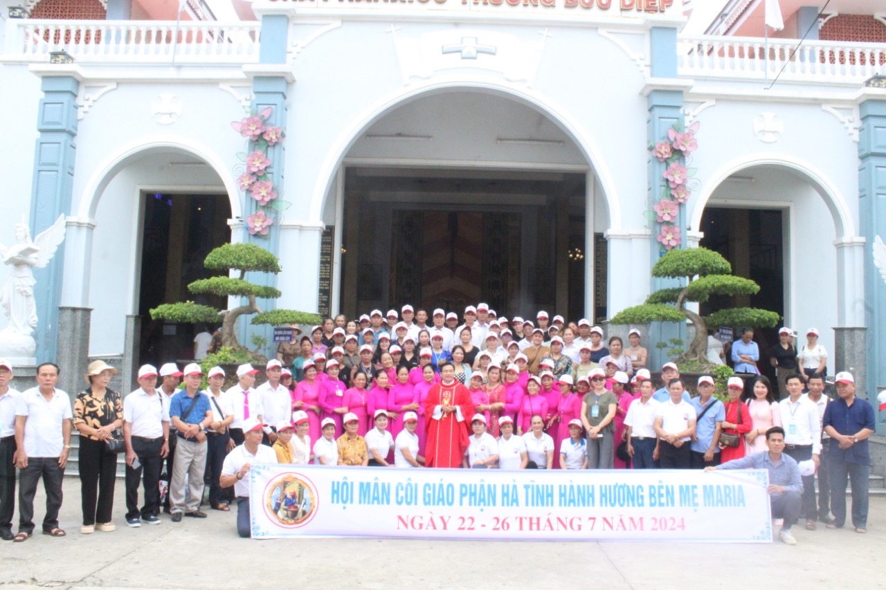Dịp hè năm nay, vào ngày 22/07 – 26/07/2024, Hội Mân Côi giáo phận Hà Tĩnh đã thực hiện cuộc hành hương với số hội viên tham gia đông đảo. 385 hội viên đã phấn khởi lên đường tới các linh địa: Đức Mẹ La Vang, Đức Mẹ Tàpao, Đức Mẹ Núi Cúi, Đức Mẹ Bãi Dâu và viếng thăm hai đền thánh: Đền thánh Máctinô (Dòng Đaminh) cùng Đền thánh cha Trương Bửu Diệp (Gp. Cần Thơ).