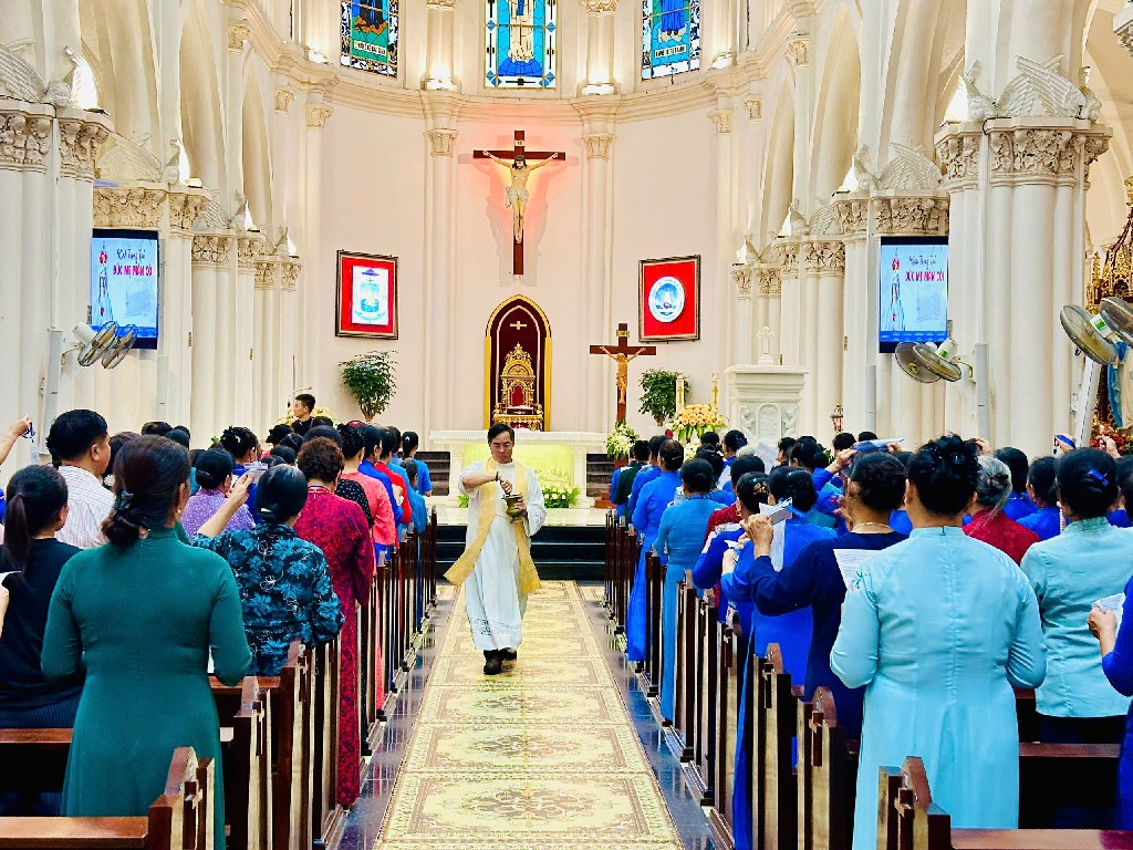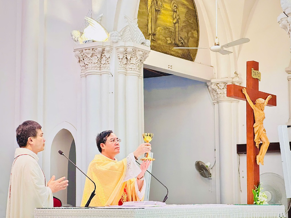 Thánh lễ diễn ra thật sốt sắng do cha tổng Đặc trách chủ tế cùng với cha phó giáo xứ Chính tòa, chắc chắn đem lại nhiều niềm vui và ân sủng cho các hội viên hiệp hội Kinh Mân Côi, trong đó có các hội viên nơi xứ Thanh thân yêu này.