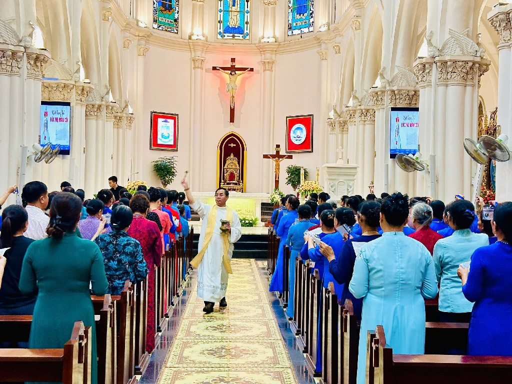 Ngày 07/10/2025, là một ngày mưa to do cơn bão số 11 Matmo ảnh hưởng nơi giáo phận Thanh Hóa. Tuy vậy, hơn 200 hội viên đại diện cho các anh chị em Hội Mân Côi giáo xứ Chính tòa cùng các giáo xứ lân cận, không vì thế mà quên ngày kính nhớ Bổn mạng Mẹ Maria Mân Côi, ngày mà ngày xưa Giáo hội quen gọi là ngày Đức Bà Chiến Thắng, khắc ghi ngày Mẹ Maria Mân Côi đã giúp Giáo hội dẹp tan quân thù vào năm 1571.