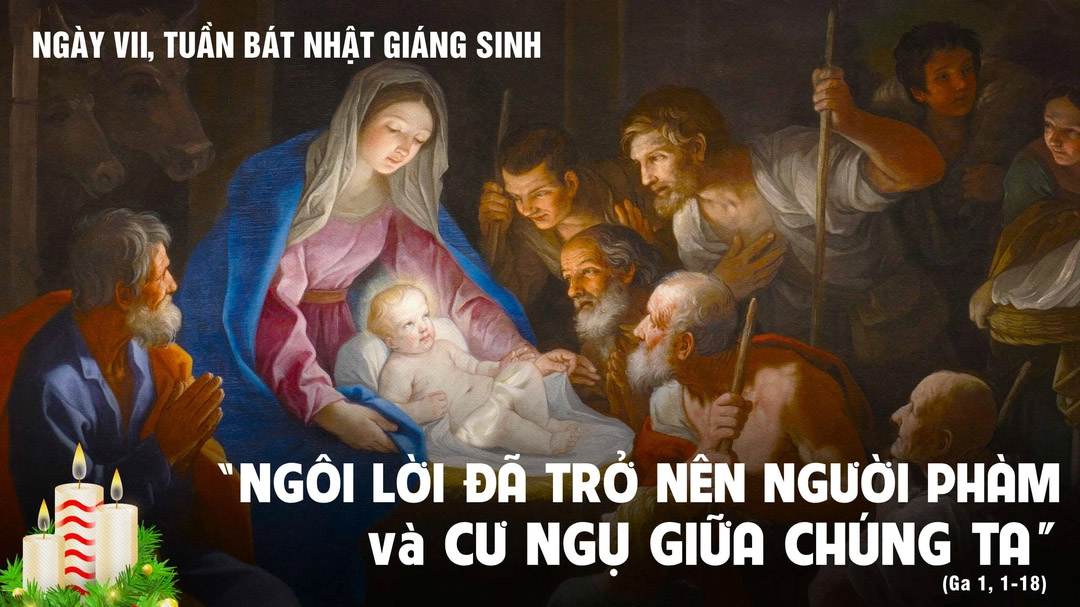 Và Ngôi Lời đã hoá thành nhục thể, và Người đã cư ngụ giữa chúng tôi, và chúng tôi đã nhìn thấy vinh quang của Người, vinh quang Người nhận được bởi Chúa Cha, như của người Con Một đầy ân sủng và chân lý. Gioan làm chứng về Người khi tuyên xưng rằng: "Ðây là Ðấng tôi tiên báo. Người đến sau tôi, nhưng xuất hiện trước tôi, vì Người có trước tôi". Chính do sự sung mãn Người mà chúng ta hết thảy tiếp nhận ơn này tới ơn khác. Bởi vì Chúa ban Lề luật qua Môsê, nhưng ơn thánh và chân lý thì ban qua Ðức Giêsu Kitô. Không ai nhìn thấy Thiên Chúa, nhưng chính Con Một Chúa, Ðấng ngự trong Chúa Cha, sẽ mạc khải cho chúng ta.