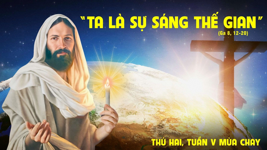 Khi ấy, Chúa Giêsu nói với những người biệt phái rằng: "Ta là sự sáng thế gian. Ai theo Ta sẽ không đi trong tối tăm, nhưng sẽ có ánh sáng ban sự sống".