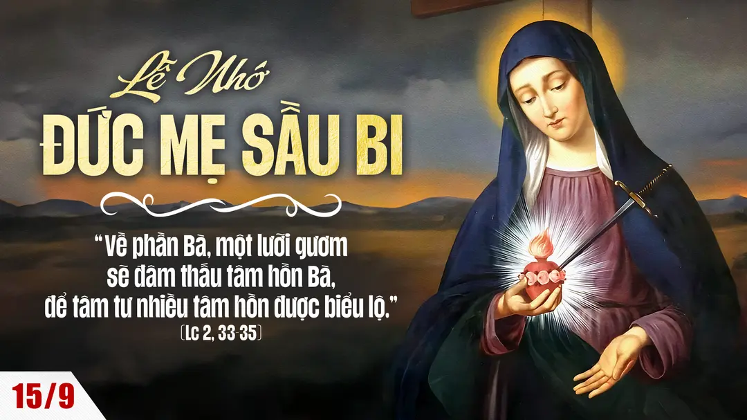 Mừng kính Đức Mẹ sầu bi, chúng ta được mời gọi học nơi Mẹ thái độ kiên trung đứng vững dưới chân thập giá. Trong cuộc sống, chúng ta cũng gặp biết bao thử thách, mất mát, đớn đau. Nếu chỉ nhìn bằng con mắt trần gian, ta dễ chán nản và bỏ cuộc. Nhưng khi nhìn lên thập giá cùng với Mẹ, ta sẽ thấy hy vọng: đau khổ có thể trở thành con đường dẫn đến ơn cứu độ, nếu ta biết kết hợp với Chúa Kitô.