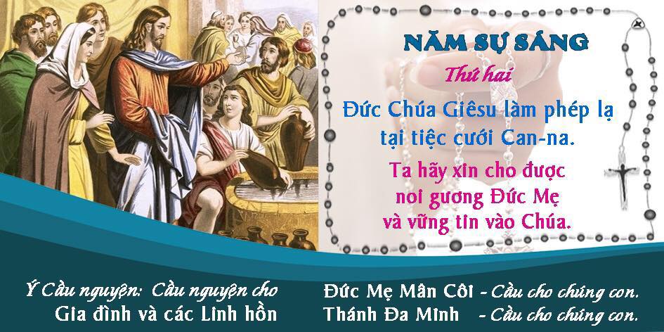 Tại tiệc cưới Cana, Chúa đã tỏ ra là Đấng Toàn Năng và Khôn Ngoan. “Đức Khôn Ngoan toả ra từ quyền năng Thiên Chúa và rực lên trong ngần từ vinh hiển Đấng Toàn Năng, nên không thể vương một tỳ ố” (Kn 7,25). Xin làm cho chúng con trở nên trong sạch, để ngày càng tin tưởng vững chắc hơn vào quyền năng của Ngài.