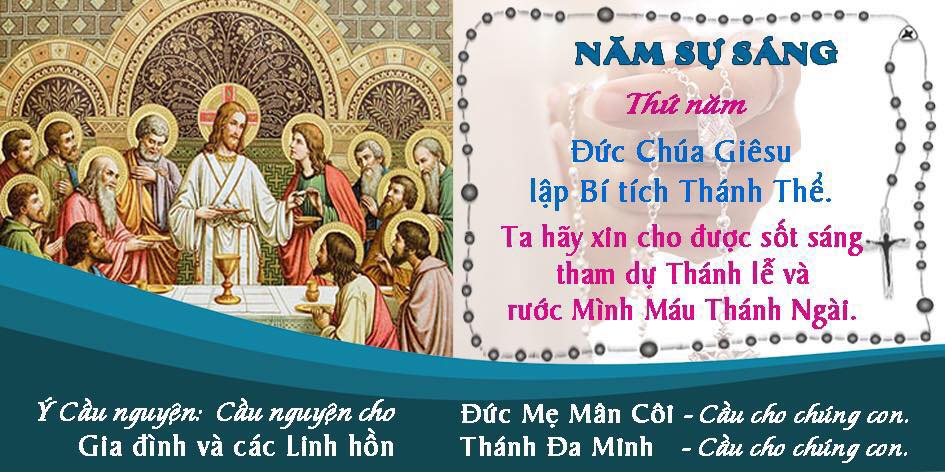 (Đọc: 1 Kinh Lạy Cha, 10 Kinh Kính Mừng, 1 Kinh Sáng Danh, Lời Nguyện Fatima).