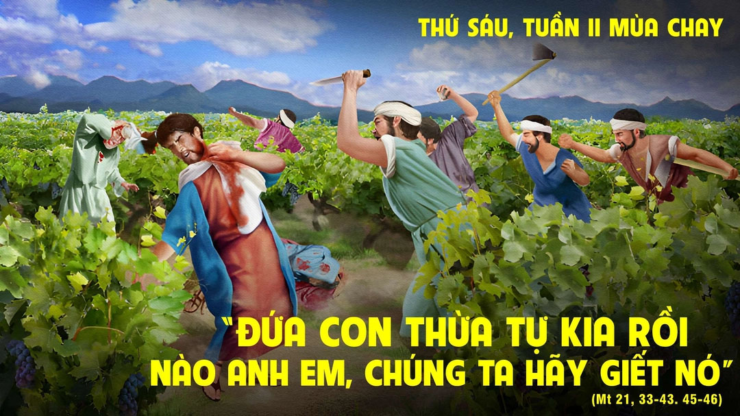 Hình ảnh Thiên Chúa nhân từ tiếp tục được Chúa Giêsu diễn tả qua dụ ngôn người chủ vườn nho. Ông đã chuẩn bị mọi thứ chu đáo, từ rào dậu chung quanh, hầm ép rượu đến tháp canh, rồi giao lại cho các tá điền. Nhưng thay vì biết ơn, họ lại hành xử tàn nhẫn với những đầy tớ mà ông sai đến: đánh đập, giết hại và ném đá họ. Ngay cả khi chủ vườn sai con trai mình đến, hy vọng họ sẽ kính nể, thì lòng tham lam đã khiến họ ra tay sát hại để chiếm đoạt vườn nho.