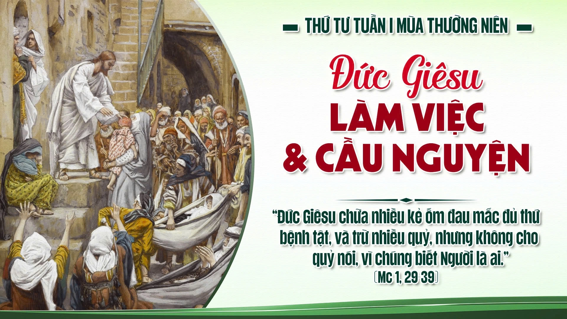 Tin mừng hôm nay cho chúng ta thấy một ngày sống rất điển hình của Đức Giêsu, trong đó mọi hoạt động đều gắn kết chặt chẽ với nhau: Người đi vào đời sống con người, chạm đến nỗi đau của họ, chữa lành họ, rồi lại trở về trong thinh lặng để ở lại với Chúa Cha. Đó không phải là một ngày đầy biến cố ồn ào, nhưng là một ngày thấm đẫm ý nghĩa, bởi từng bước đi đều phát xuất từ tình yêu và hướng về ơn cứu độ.