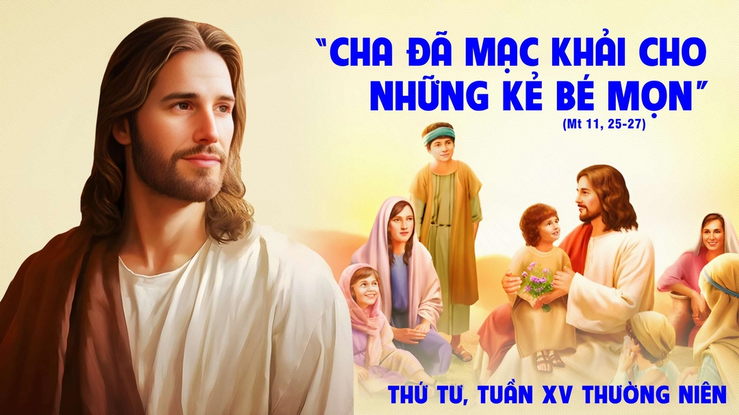 Sau khi khiển trách dân chúng ở các thành Khoradin và Bếtsaida vì đã chứng kiến nhiều phép lạ mà vẫn không tin, Chúa Giêsu cất lên lời ngợi khen Chúa Cha. Người tạ ơn vì Chúa Cha đã không mặc khải mầu nhiệm Nước Trời cho những kẻ tự cho mình là thông thái nhưng lại mặc khải cho những người bé mọn. Người cầu nguyện rằng: “Lạy Cha là Chúa Tể trời đất, con xin ngợi khen Cha vì Cha đã giấu không cho bậc khôn ngoan thông thái biết những điều này nhưng lại mặc khải cho những người bé mọn” (Mt 11,25).